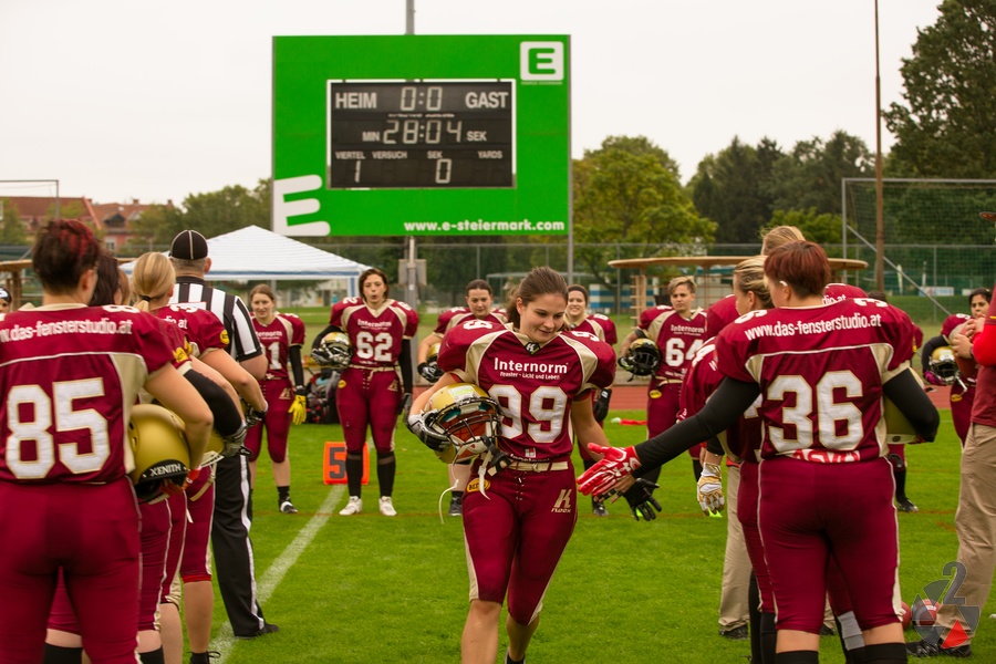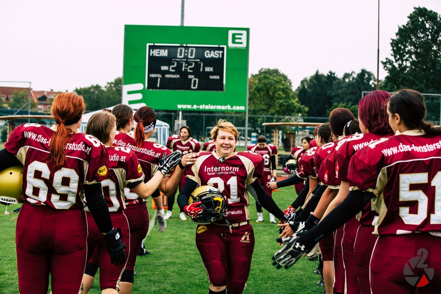 Spannung bis zum Schluss, eine ausgezeichnete taktische und spielerische Leistung. So sicherten sich die Ladies der Telfs Patriots den Sieg in ihrem ersten Saisonspiel auswรคrts bei den Gastgebern der Graz Giants. Angefeuert von zahlreichen treuen Schlachtenbummlern aus Tirol zeigen die Spielerinnen vor allem in der zweiten Hรคlfte American Football vom Feinsten und holten so den lรคngst verdienten ersten Sieg. Glรผckliche Gesichter inklusive.